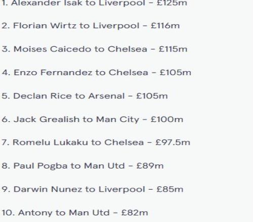 此前的英国转会费纪录由恩佐·费尔南德斯保持,他在帮助阿根廷夺得世界杯后以1.05亿英镑加盟切尔西,但仅随队获得欧协联和世俱杯,未能让蓝军成为冠军争夺者。