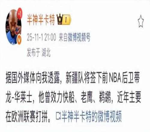 在CBA联赛的这个休赛期里,新疆男篮的调整还是比较大的:在教练组方面,球队围绕刘炜组建了新的团队,包括前CBA神射手罗智等多名国内外教练加盟;在球员方面,赵睿通过转会离队,球队补强了王薪凯,并上调了冯傲、张庆泽、殷召航等三名年轻球员进入到一队,其中冯傲的潜力非常大,是刘炜的重点培养目标;在外援方面,新疆男篮只留下了上个赛季的一名外援劳森,并签下了小外援纳托尔和锋线外援路易斯-金。就在日前,新疆男篮确定了第四名外援,据媒体人“半神半卡特”透露,新疆男篮将签下前NBA后卫蒂龙-华莱士,球队将会以四外援的阵容迎接新赛季。