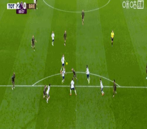 第43分钟,西蒙斯中场抢回球权后一条龙破门斩获热刺生涯首球,热刺2-0