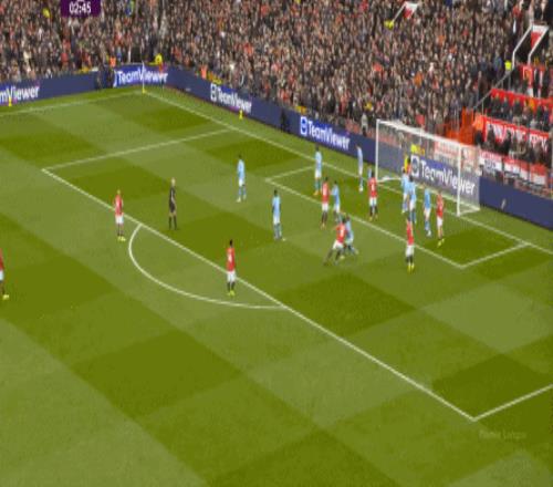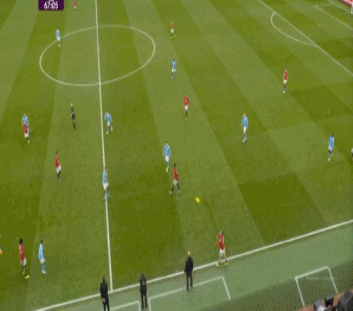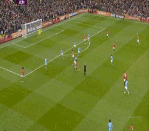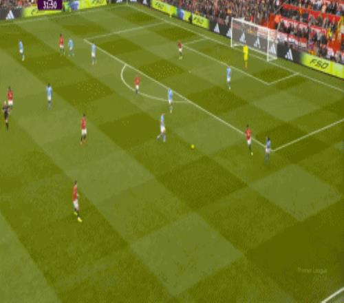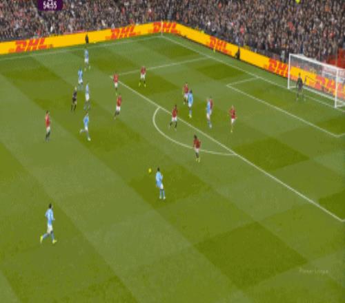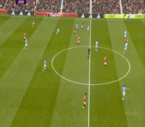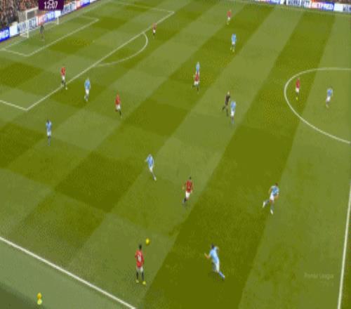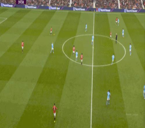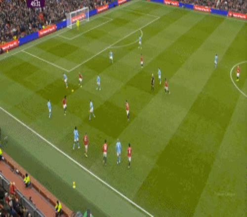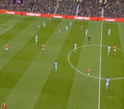 比如曼城曾在前场完成逼抢,让曼联需要在人员不整的情况下紧急防守: